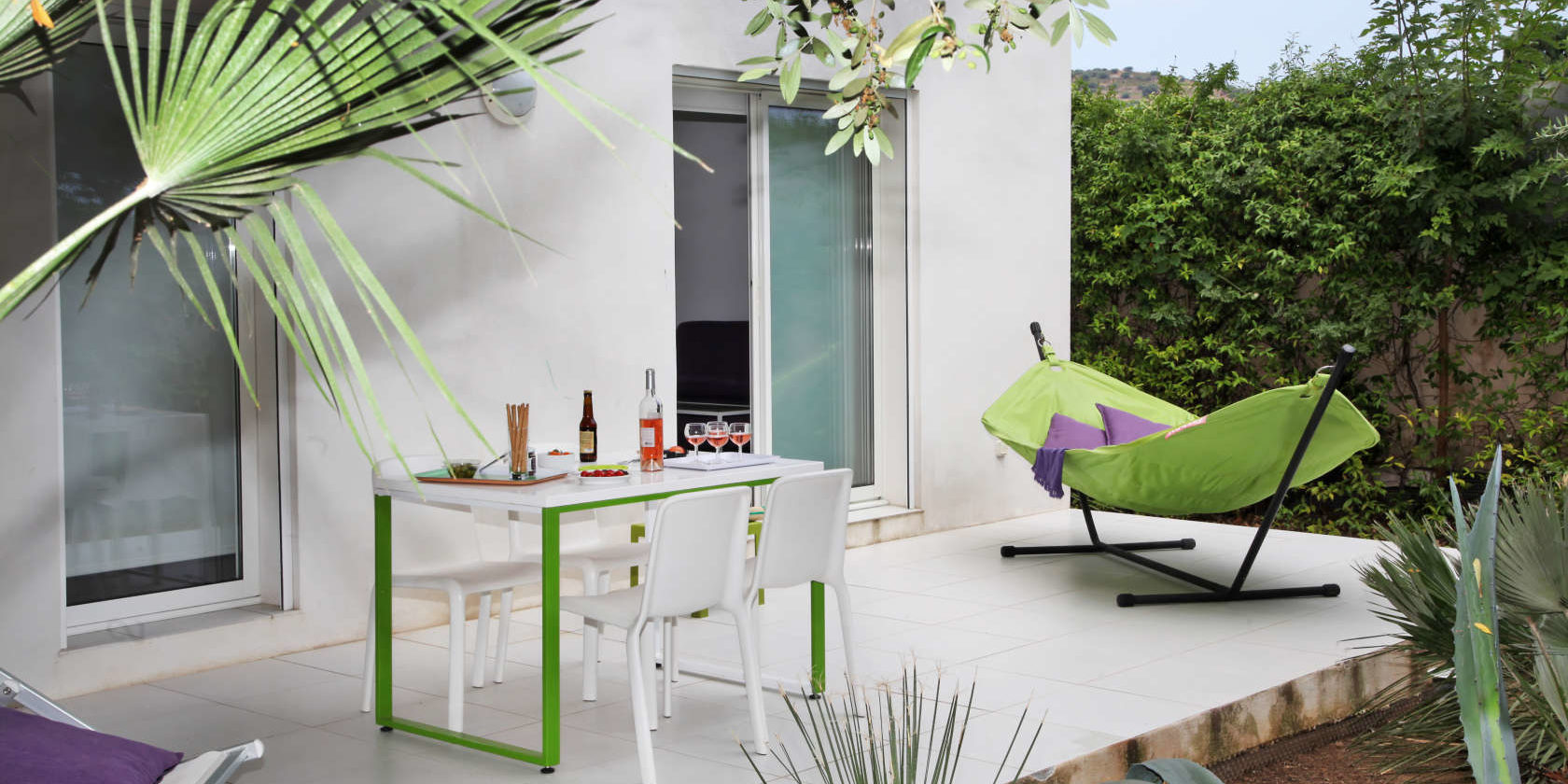 Residence Le Clos Saint Paul is een universum van wit en kleuren. De appartementen zijn comfortabel, modern en functioneel. Ze hebben een zeer volledige inventaris en bieden je veel privacy. Binnen overheerst zuiver wit, maar het gebruik van fel gekleurd meubilair en accessoires in turquoise, paars en geel (we noemden 'm al: de kleurenwaaier van Pantone. Eigenaresse Anne Marie heeft zich er door laten inspireren) geeft de appartementen iets eigens. Vanuit je appartement heb je directe toegang tot het ruime balkon of terras. Alle appartementen hebben airconditioning en liggen op de begane grond of op de 1e verdieping.