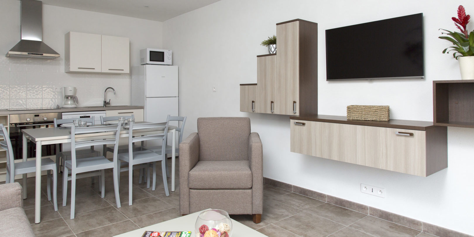 We zeiden het al: de appartementen van Residence Porto Marine zijn sober ingericht. Maar qua comfort zit je hier zeker goed. De matrassen op de bedden zijn van hotelkwaliteit en zelfs de slaapbank ligt prima. In de keuken vind je alles wat je nodig hebt en er is zelfs een wasmachine.